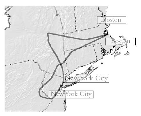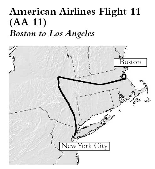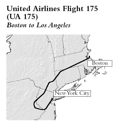 Vediamo ora le rotte ufficiali dei primi due aerei, quelli che hanno colpito le Twin Towers.