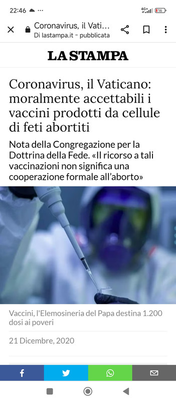 Invece su Papa e vaccini, aggiungo questo.. perché spesso molti tralasciano questo primo punto. Perché la storia dei "feti" dove a passare come complo-negazi-nazi-fakismo..