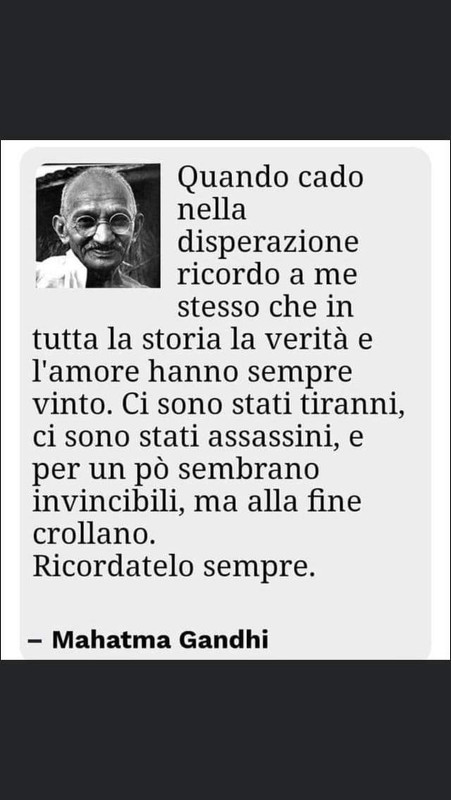 Zorg diceva che la speranza è attendismo inattivo e deleterio. Non sono daccordo. Se per te (Marina) la speranza in quello che credi non ti impedisce di batterti con tutte le tue forze nel frattempo che arrivi chi tu stai aspettando, lo stesso vale per me. Non sono sicuro che stiamo aspettando la stessa cosa, comunque, ma questo non fa differenza. Continui a ripetere il famoso adagio che "conosceremo la verità e questa ci farà liberi", ma non l'ha detto il Mahatma.