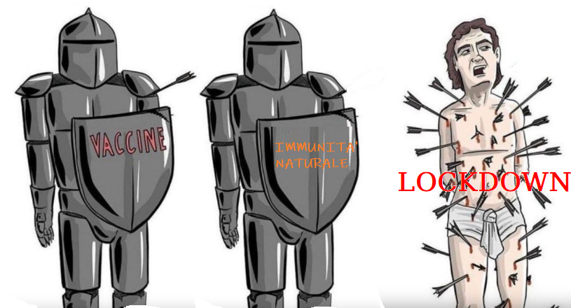 Anche ammesso che la corazza ("vaccino") riduca la possibilità di essere trapassato dalle frecce (probabilità di ammalarsi) restano comunque invariati gli effetti collaterali gravi causati dal "vaccino ".