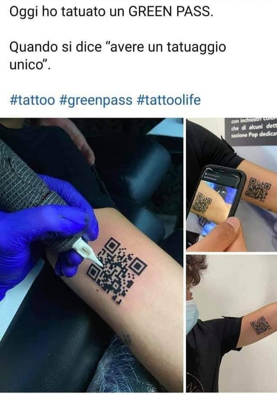 O una cosa completamente inventata (come spesso accade), o prendono (e come ?) un covidiota a livello di campionissimo, e imbastiscono la notizia per rendere il fatto del tatuaggio come una cosa esemplare e auspicabile per moltiplicare l' "effetto gregge".