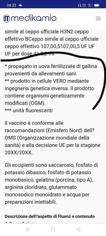 In Spagna la dottoressa Albarracin ha ampiamente spiegato tutto questo meccanismo. Esiste anche un documento chiamato Informe Barbastro, di un medico di Barcellona, che denuncia la correlazione tra l'antinfluenzale e i decessi. Guardate bene gli ingredienti dell'antinfluenzale: contiene 3 o 4 ceppi d'influenza, tra cui la SARS 1. Come mai tutti questi positivi? Fate voi. I nomi in commercio sono vari: Chiromax, Flucelvax, Fluezone, Fluad, etc. Ma I principi sono gli stessi. E non sottovalutiamo il fatto che contengono anche il polisorbato 80, che causa una tempesta di citochine, ovviamente con conseguenze gravi x chi ha già altre patologie. I medici l'hanno detto più volte e in più paesi, ma non li fanno parlare."