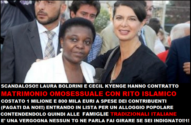 deve viaggiare con gli emigranti via CONGO SOLO ANDATA E bene che Salvinimetta fuori legge i partiti come LeU incompatibili con i diritti dei cittadini comuni TESTIMONE DI UNA NON NIENTE AZIONE, NON VOLUTA CONTRO UN PEDOFILO CLANDESTINO, SUBITO INVIAVA LA SUA SCORTA, CHE DISGRAZIATAMENTE LA PAGHIAMO NOI [!!1!] domenica una cassiera del tigros, nonostante le casse veloci, ha fatto passare un marucchino davanti a tutti, inclusi la mia vecchia madre [ ], solo perché aveva solo due bottiglie di latte. inutile dirle no, e far notare che il tizio non è handicappato ne incinta, si è avvicinata a boccuccia al suo amico e gli ha detto:"hai visto che responsabilità mi posso prendere?". pare che alitalia e tigros abbiano la stessa politica ECCO PERCHE' LE "RISORSE" PRIMITIVE, APPENA GLI CHIEDI IL BIGLIETTO, MENANO BOTTE DA ORBI A CASACCIO. VEDONO CHE LA LORO ISPIRATRICE NON PAGA Il governo del "cambiamento" e dell' "ONESTA" non ha nulla da dire al riguardo? Si era portata il toy boy a spese nostre, che schifo!