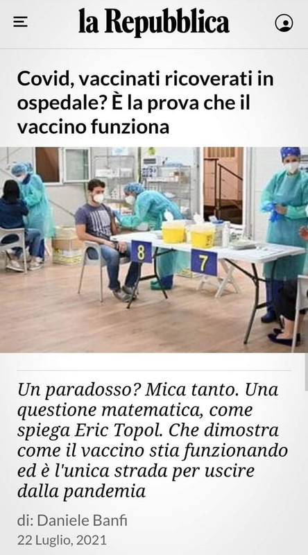 Sentirlo sragionare a proposito del fatto che ci si vaccina non tanto per sè stessi, ma per proteggere gli altri, lo qualifica come essere non-pensante. Trattasi di un classico caso di ocoparlare (duckspeaking), così come descritto da Orwell (www.ianvisits.co.uk/blog/2008/07/10/duckspeak/). Faccio un esempio che prendo da un intervento di Francesco Toscano di ieri o ieri l'altro: mettiamo che una persona voglia andare a fare un viaggio o spostarsi per qualsiasi altro motivo in un paese in cui è facile contrarre malattie esotiche come malaria, tifo, colera etc. Per evitare di contrarre tali malattie, alle quali il nostro corpo non è abituato, esistono dei vaccini e la persona in questione decide di sottoporvisi. Dopo l'inoculazione il vaccinato dovrebbe sentirsi tranquillo. Cosa pensereste, invece, se questa persona, già vaccinata, pretendesse che tutta la popolazione locale con cui entrerà in contatto abbia anch'essa ricevuto il vaccino? Da quando l'efficacia dei vaccini è correlata all'immunizzazione del 100% della popolazione in un dato contesto geografico?
