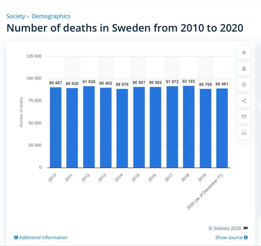 Ma la cosa importante è che comunque tale numero è circa la metà del numero che il sito John Hopkins indica ad oggi come morti per Covid in Svezia.