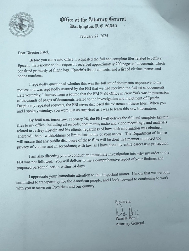 Stanno iniziando a chiedere le dimissioni di Pam Bondi visto il fiasco di ieri riguardo il mancato rilascio della lista di clienti di Epstein fatta passare peraltro con quella squallida mascherata con i raccoglitori bianchi e i 6 influencer sionisti