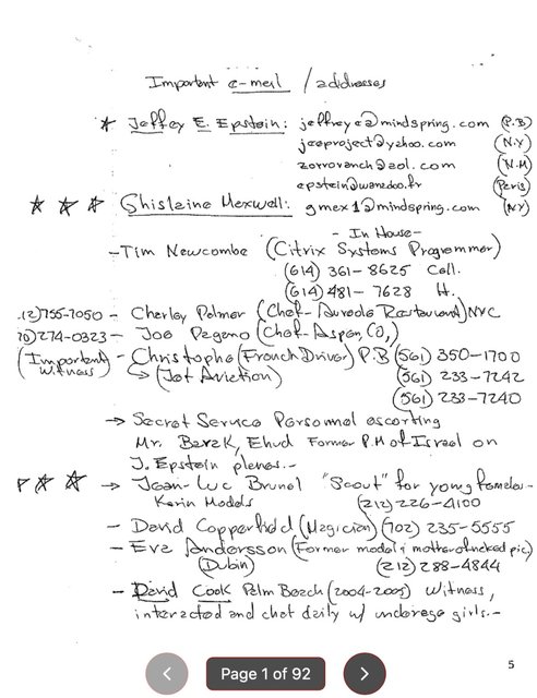 Il piccolo lotto di documenti includeva copie dei registri di volo dell'aereo privato di Epstein, che sono stati a lungo disponibili in molteplici casi giudiziari, e una fotocopia pesantemente censurata di una rubrica presumibilmente compilata da Epstein e dalla sua confidente di lunga data Ghislaine Maxwell, che è stata citata nei resoconti dei media per molti anni."