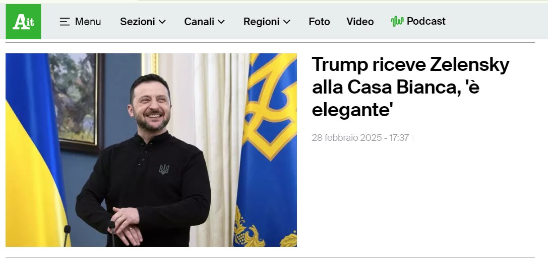 Accogliendo Volodymyr Zelensky alla Casa Bianca, il presidente degli Stati Uniti Donald Trump ha fatto notare l'abbigliamento del suo omologo ucraino. "Oggi è vestito di tutto punto", ha detto ai fotografi e ai giornalisti. Zelensky è solito indossare capi militari da quando è iniziata la guerra, il 24 febbraio 2022.