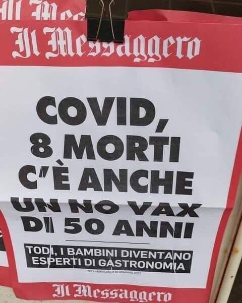 Auguro comunque, ai tantissimi odiatori, di non aver mai bisogno di sangue o plasma. Potrebbe capitargli quello di un infame non vaccinato come il sottoscritto.