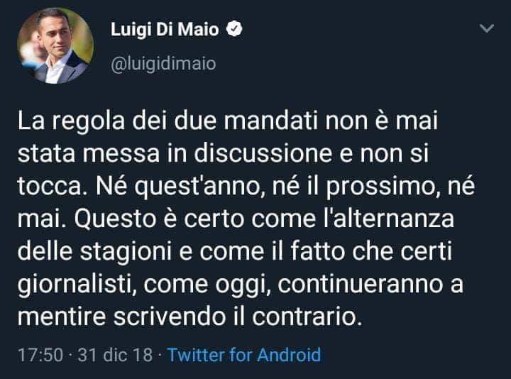 Ed ecco che il democristiano Di Maio prende l'imbarazzante tracollo elettorale che ha causato, e invece che fare autocritica e magari un passo indietro, la sfrutta per fare altri danni: rimosso il limite dei 2 mandati per i consiglieri comunali. Ormai del Movimento 5 Stelle é rimasto solo il nome. Forse siamo davvero morti tutti nel 2012 e questa è solo una simulazione malsana nella quale dobbiamo vedere quanto possiamo imbarazzarci da soli. O é così o il partito degli onesti che non fa alleanze con nessuno ha stracciato il suo codice etico per salvare il suo ministro leghista da un processo per sequestro di persona plurimo e quando viene bastonato alle elezioni strappa via un altra regola del suo statuto. No, é più plausibile la storia del siamo tutti morti.