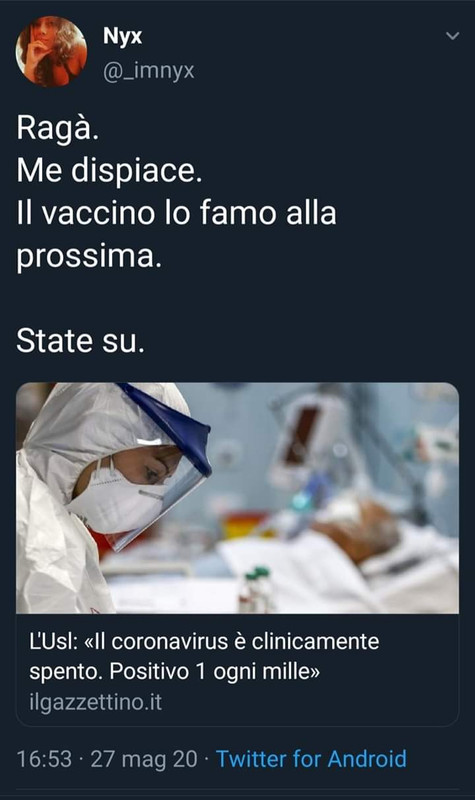 Bisogna vigilare su queste notizie, prima che la classe politica le ignori per continuare con un inesistente emergenza per farci ingoiare a forza un futuro vaccino.