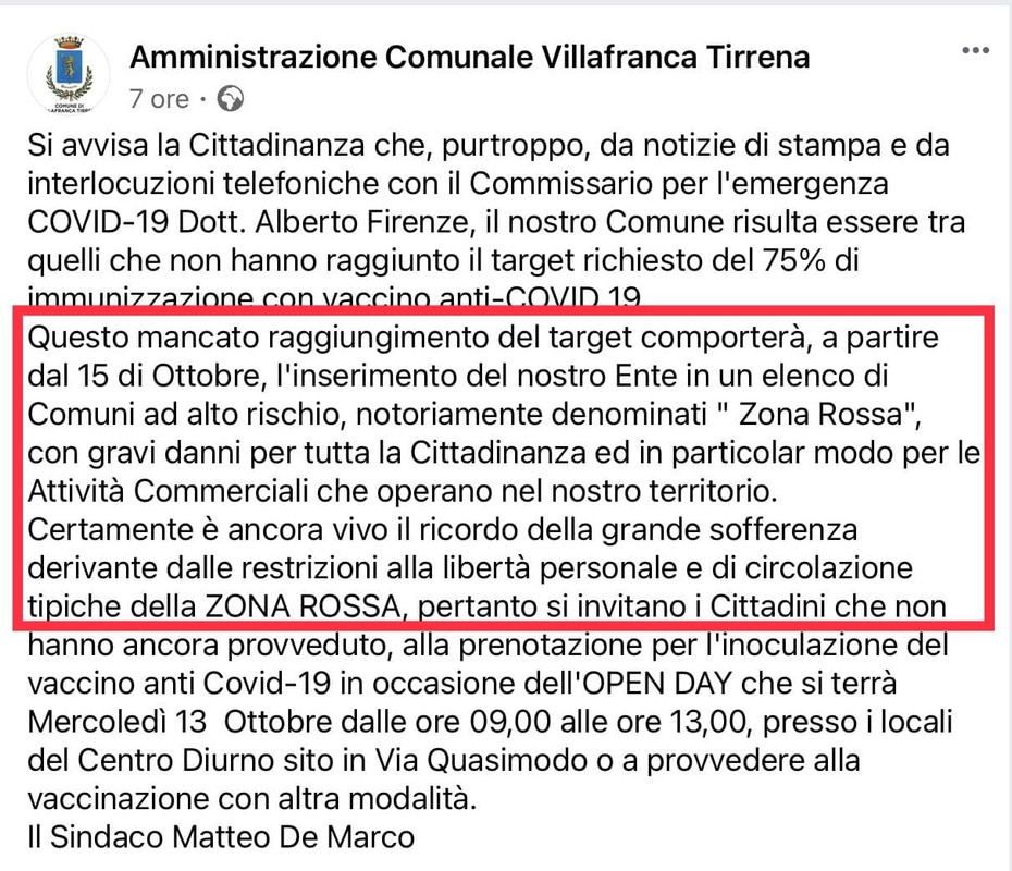 Peraltro se in Itaglia la percentuale di vaccinati con doppia dose è di circa il 70% mi pare chiaro che tantissimi comuni siano sotto il target del 75%.
