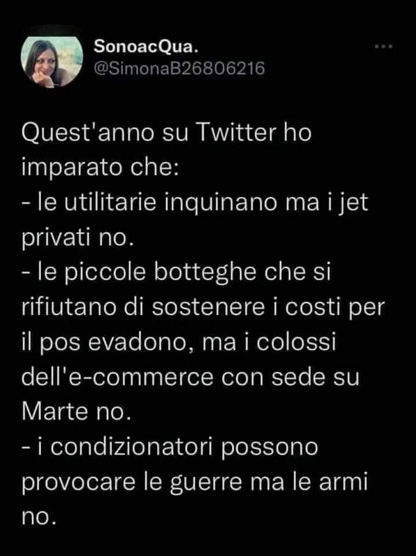 Il fumo del camino è fondamentale, mio caro, proprio come i rutti delle mucche.....non sono i jet o le grandi navi che inquinano, nè le fabbriche come l'Ilva di Taranto.....l'amianto?