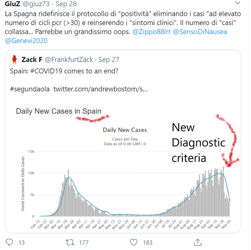Per quanto riguarda la situazione italiana avevo già postato settimane fa una tabella dove risultava inequivocabilmente che la seconda ondata è un'ondata di tamponi: