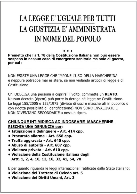 dopo tutto quanto detto nel MONDO sulla inutilità e pericolosità della mascherina, tutto il giorno???? ignoranti, ciechi e sordi!