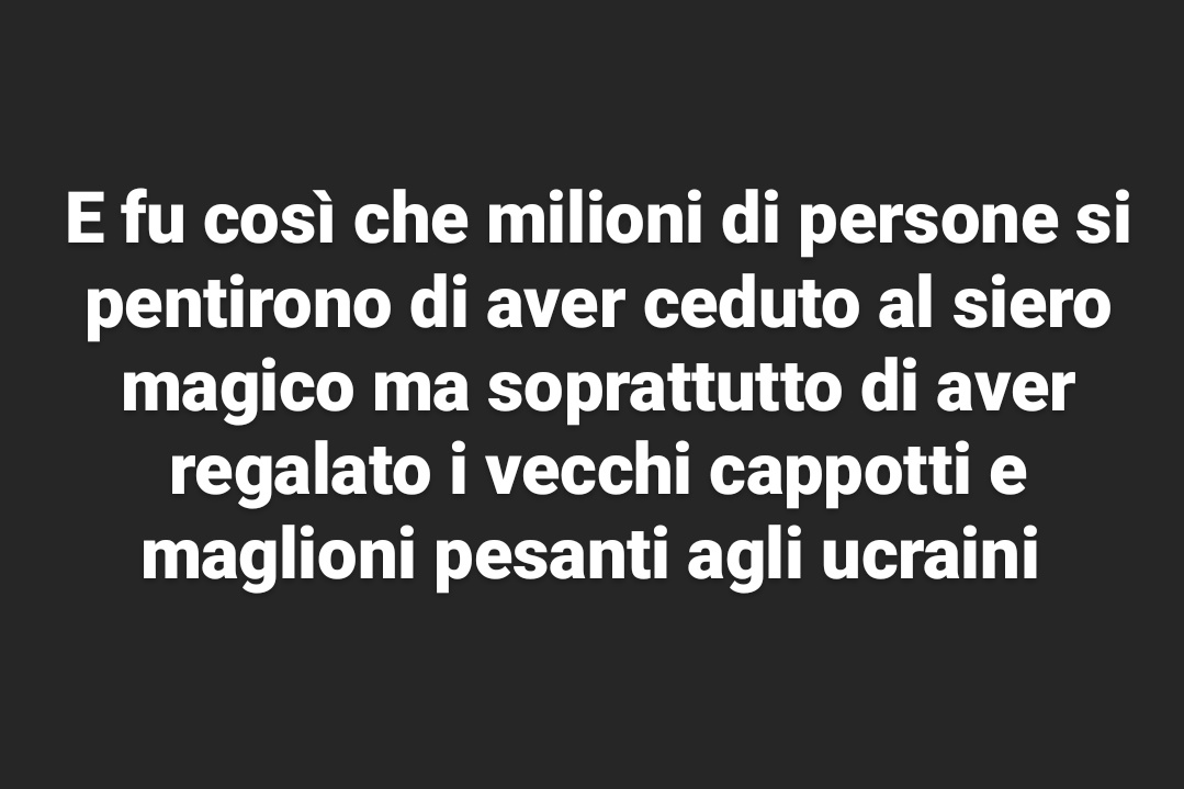 E siamo solo all'inizio, ora si apre una nuova fase, immaginati tu cosa accadrà a persone che col sistema immunitario compromesso per sempre, quando dovranno trascorrere l'inverno al freddo e con pochi viveri a disposizione.