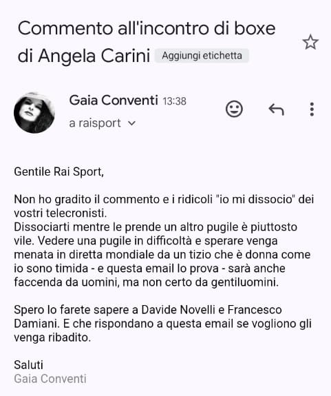 -Se tutti (o l'85%) i pugili avessero detto: "Oggi a te, domani a me? No! Allora solidarizzo oggi con la Carini: scioperiamo tutti!"