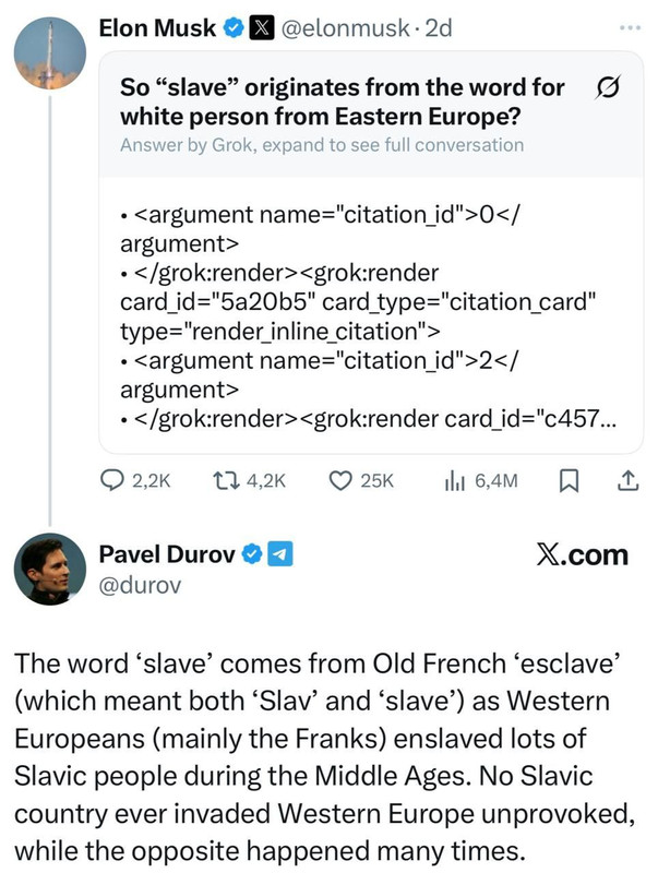 Durov – ha spiegato a Elon Musk il significato della parola «schiavo»: