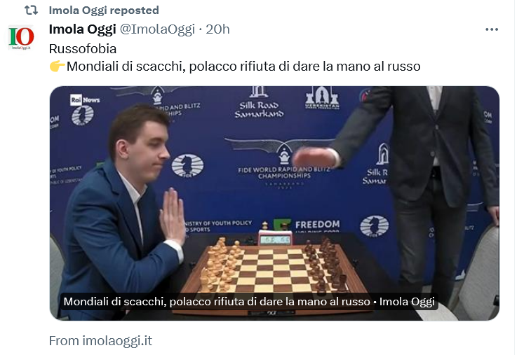 Onestamente non capisco il senso di praticare attività sportive con persone di cui non ho rispetto : se ritengo i russi antropologicamente gente indegna non ci gioco certo a scacchi assieme.