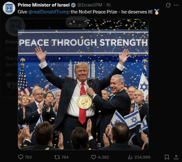Financial Times scrive che nel desiderio di ottenere il Premio Nobel per la Pace Trump è andato troppo oltre.
