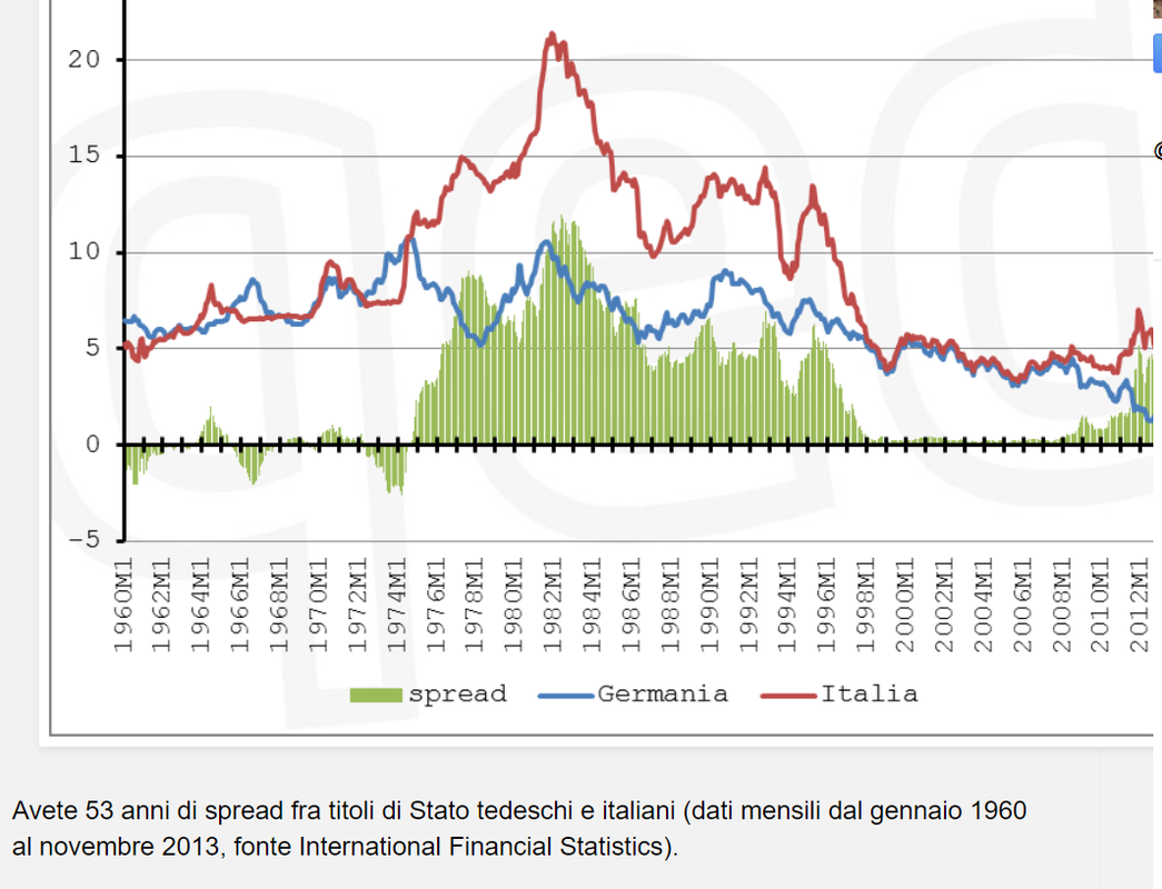 Per esempio non è vero che nel 1982 il differenziale dei btp decennali tra quelli tedeschi ed italiani toccava 1175 punti per il semplice motivo che nel 1982 non erano stati emessi btp decennali italiani, e neanche per tutti gli anni '80