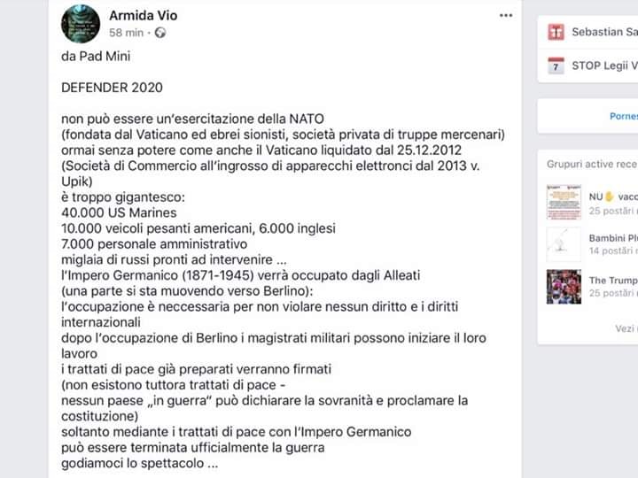 I due eventi (vairus ed esercitazione) mi sembrano molto più collegati di quanto si voglia farli apparire, al di la della coincidenza temporale. Di fatto ci stanno imponendo una specie di regime marziale, come se ci volessero preparare a uno stato di guerra, dall'altra ci stanno portando in Europa gli strumenti veri e propri necessari a concretizzarla (la guerra).