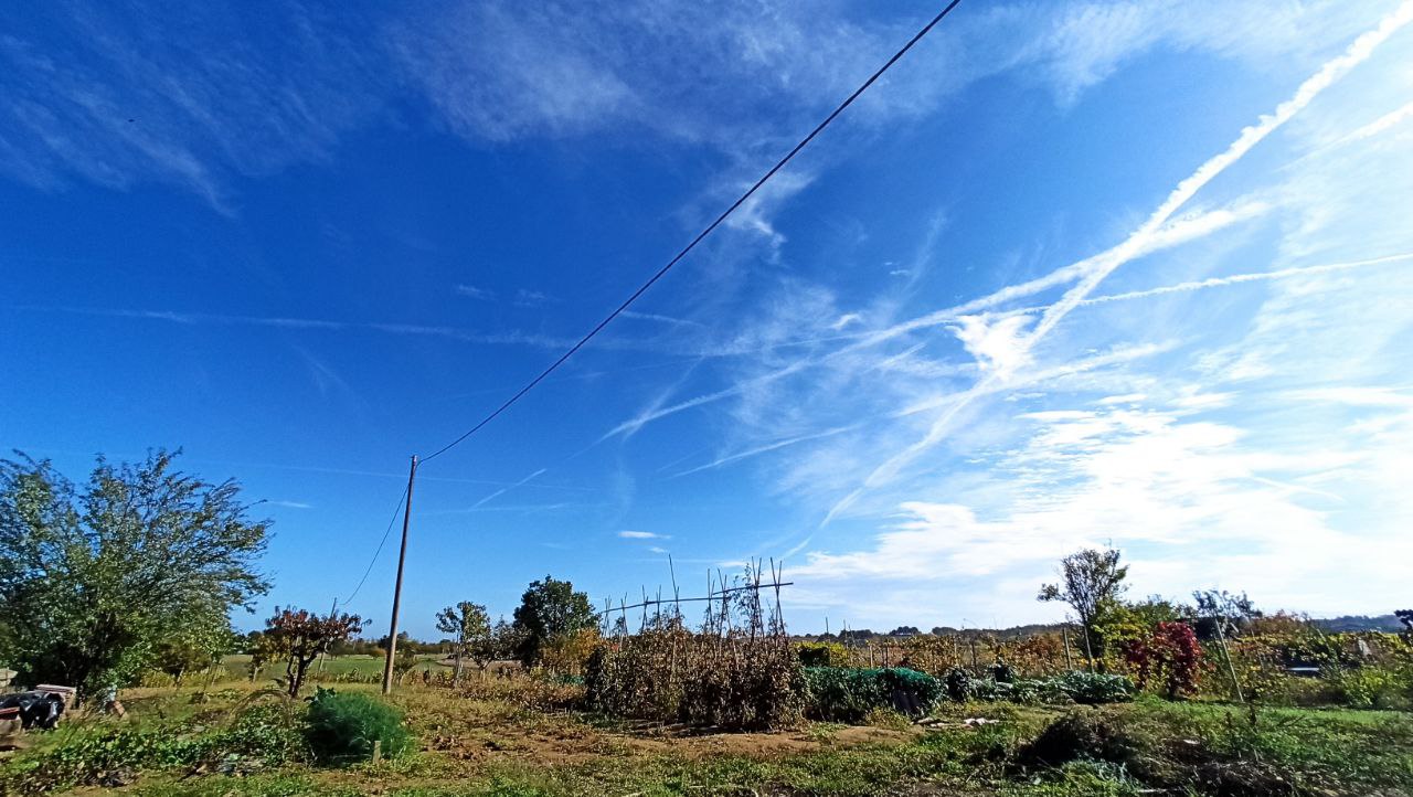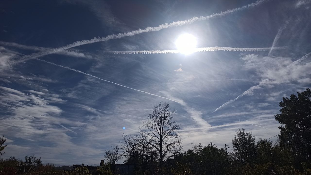 Ripeto, ieri ho visto un cielo blu terso e limpido (con nuvole vere, senza scie), oggi invece il cielo era di un celestino pallido.