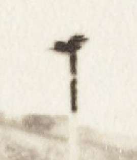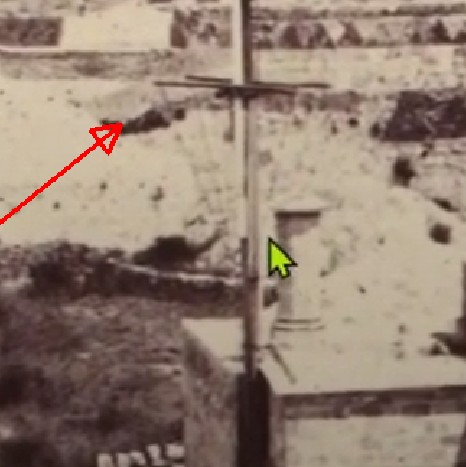 Il palo dovrebbe vedersi all'estrema sinistra in alto, visto che nella foto del 1857 esso è collocato lungo l'angolo fra le due porzioni di edificio, in prossimità del comignolo alle sue spalle