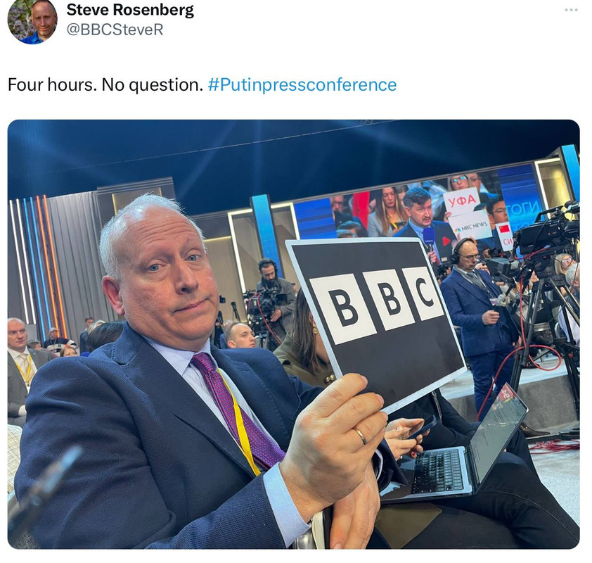 Sì, lasciategli chiedere quando è stata l'ultima volta che il suo governo ha ammesso giornalisti russi alle sue conferenze stampa. E non sto parlando del diritto di fare domande e di sostenere un colloquio!