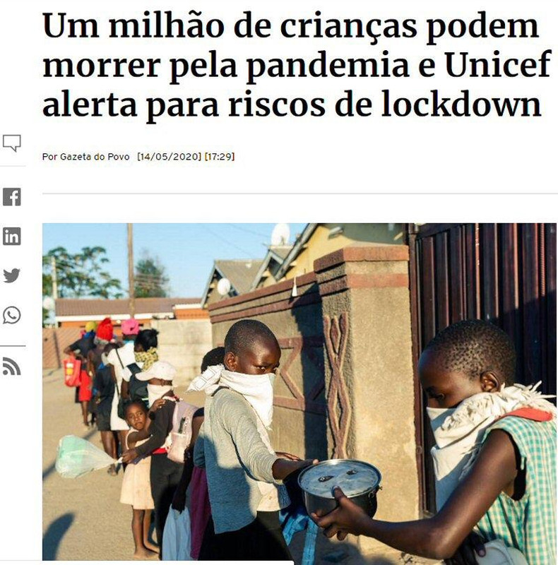 SECONDO UNICEF UN MILIONE DI BAMBINI POSSONO MORIRE CAUSA IL “LOCKDOWN” DELLA PANDEMIA.