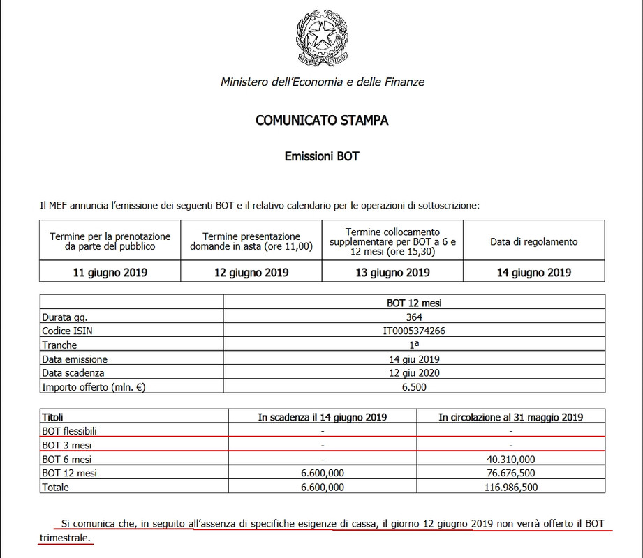 Che sono quelli riportati nel precedente messaggio sulle differenze oggettive (e NON ipotetiche) fra emissione di BOT e MINIBOT, e cioè Quote: