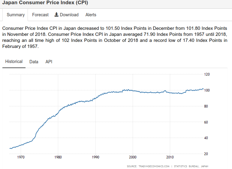 quindi il debito privato Giapponese decresce dal 1995 nonostante il Giappone stia "inondando" il mercato di moneta. Ciliegina sulla torta questo è l'indice dei prezzi al consumo