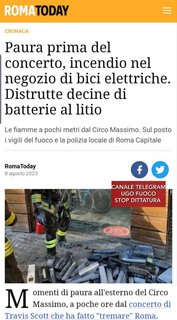 Una decina di giorni fa ho visto un pezzo di news mattutine alla TV inglese dove si parlava di biciclette e scooter elettrici che vanno a fuoco e esplodono (usano la stessa tecnologia fallace usata per le batterie delle auto elettriche). In pratica si parla di un episodio ogni DUE GIORNI a Londra e di 40 dall'inizio dell'anno a Manchester, ovviamente spesso questi incendi causano morti e feriti. I vigili del fuoco intervistati parlavano di come questi incendi siano impossibili da domare perche' continuano a bruciare fino a che l'energia nella batteria e' esaurita.