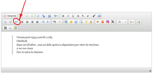Dopo vai all'editor , cosa usi delle opzioni a disposizione per citare la mia frase .