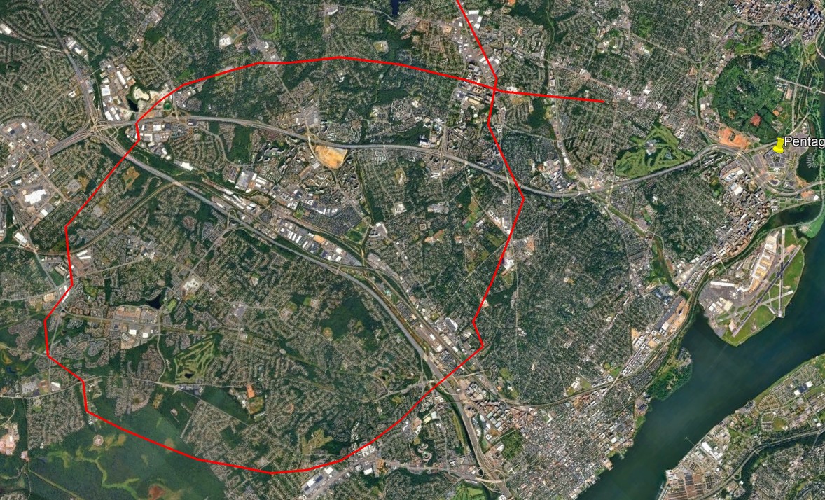 7) Adesso viene il bello: colpire il Pentagono! Il finto AA-77 sorvola la capitale USA praticamente senza problemi, esegue le sue virate strette impossibili da effettuarsi con un aereo di linea. Mai sentito parlare di stallo ad alta velocità? Esso si allinea con la facciata del Pentagono da colpire armato di un missile con testata perforante nel mentre un altro aereo civile sorvola l'hotel Watergate diretto verso il Pentagono nello stesso momento. L'aereo civile sorvola il Pentagono mentre il finto AA-77 colpisce il Pentagono. Boom! Un aereo civile ha colpito il centro nevralgico del potere militare. L'aereo civile atterra nel caos dell'areoporto...