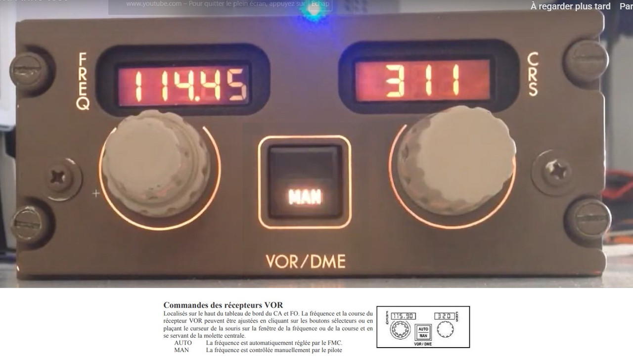 Seguire una radiale VOR non è un'impresa impossibile. Qualunque sia il velivolo, il principio è lo stesso. In questo caso, se non dimentico nulla, basta impostare la centralina in modalità manuale, visualizzare la frequenza VOR e poi la radiale desiderata. Quindi bisogna selezionare la modalità VOR dell'EHSI in modo che il pilota possa seguire la sua rotta su questo display.