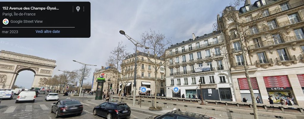 Poi calcola la parallasse dovuta allo spostamento orizzontale di x centimetri a tua scelta del pallone che è bloccato ma non immobilizzato, tenendo in conto che il singolo diciamo pixel del bordo laterale dell'Arco di Trionfo in foto, a quella risoluzione di quella foto corrisponde ad una distanza di decine di centimetri almeno.