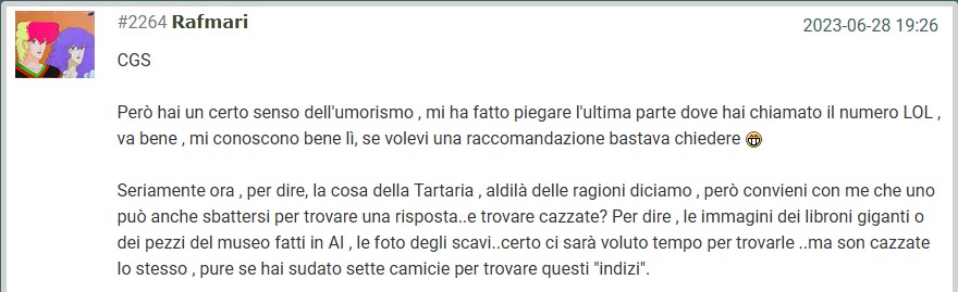 3) Per esperienza, se qualcosa torna e ritorna nelle ipnosi allora qualcosa da tenere in considerazione c'è, motivo per cui nonostante allora avessi molto storto il naso perché non avevo riscontri, ho continuato a seguire l'argomento Tartaria.