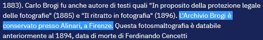 vengo alla spiegazione CHE MI SONO DATO, nel senso che mi basta per uscire dal tunnel e non impelagarmi in una laurea breve nella storia della fotografia, ma non è affatto detto che sia quella giusta, solo quella per me la più probabile.L'indizio l'avevo già trovato in realtà, ma tralasciato in quella fase non essendo inerente alla mia ricerca del momento. Nel link al sito dei beni culturali sta scritto riguardo a Brogi :