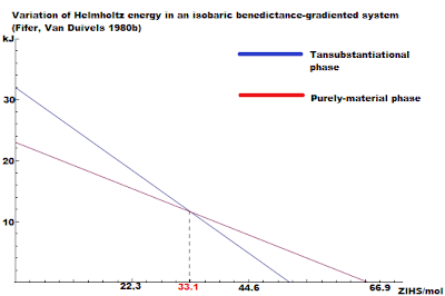 La dimostrazione di questa formula ci distoglierebbe troppo dall'argomento, ma si può trovare in qualunque buon testo universitario di teologia dei sacramenti eterici. Ai fini pratici, l'entalpia di transustanziazione si applica solo ai composti contenuti in pane e vino (campo energetico vegetariano), ma la relazione ha validità universale e andrebbe bene anche per eventuali altri composti disciolti nel vino o nell'impasto del pane eucaristico.