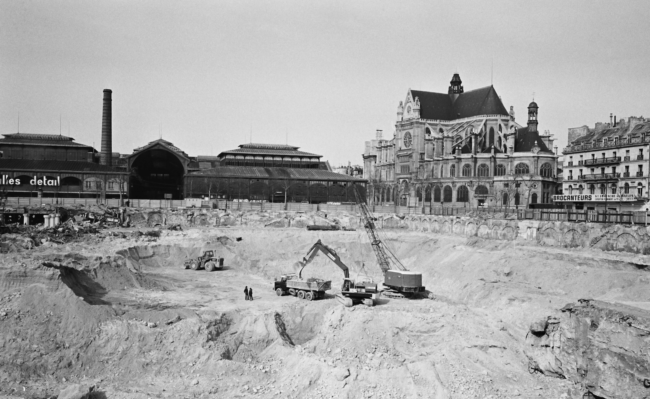 a mia disposizione, sono riuscito a capire dove e quando fosse avvenuto il crimine, e posso affermare che....anche questa c'entra na' mazza.Si tratta di una foto molto probabilmente vera (lo dimostro dopo), della demolizione dello storico grande mercato di Des Halles a Parigi, avvenuto agli inizi degli anni '70, per costruirci sotto una fermata della metro ed un centro commerciale sotterraneo.