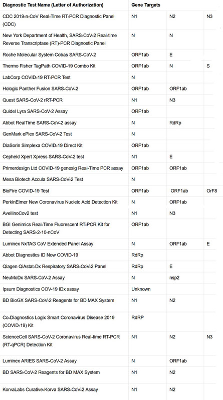 Inoltre ogni produttore di test tende a non rendere pubblica la sequenza utilizzata ma soltanto il gene che va cercare, sia essa la proteina S, il nucleocapside N o il RdRp o l' Orf1, l'E.