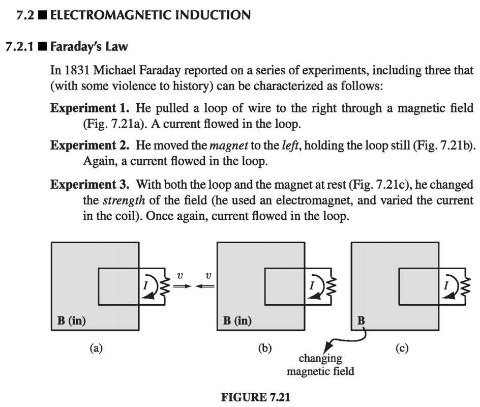 Quindi non ci deve sorprendere il fatto che l'esperimento (a) e l'esperimento (b) della figura 7.21 diano lo stesso risultato perché è solo la velocità relativa tra campo e conduttore ad importare. Infatti nella teoria della relatività deve essere così. Ora andiamo ad un altro libro, "The Classical Theory of Fields" di Landau e Lifshitz, io ho la quarta edizione, ma ho scoperto che su internet si trova la terza versione in pdf e che andrà bene uguale