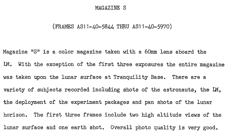 Ricorda Massimo che tutta la tua parte dedicata alle foto in American Moon partiva da un presupposto: le scansioni dell'Apollo Journal erano "originali", ossia mostravano il vero aspetto delle pellicole. In questo senso tutta la tua analisi poteva avere un senso, prima tra tutte questa considerazione che stranamente ti è sfuggita: ma come hanno fatto gli astronauti a beccare al volo tutte le esposizioni senza brackettare, e perché non ci sono danni da radiazioni?