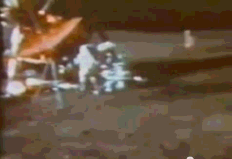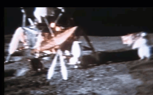Poi è talmente sicuro della pendenza della bandiera che ha preso un video che non so se è per il fisheye o per altro, è tutto storto, tant'è che l'astronauta che passa vicino alla bandiera è inclinato esattamente allo stesso modo.