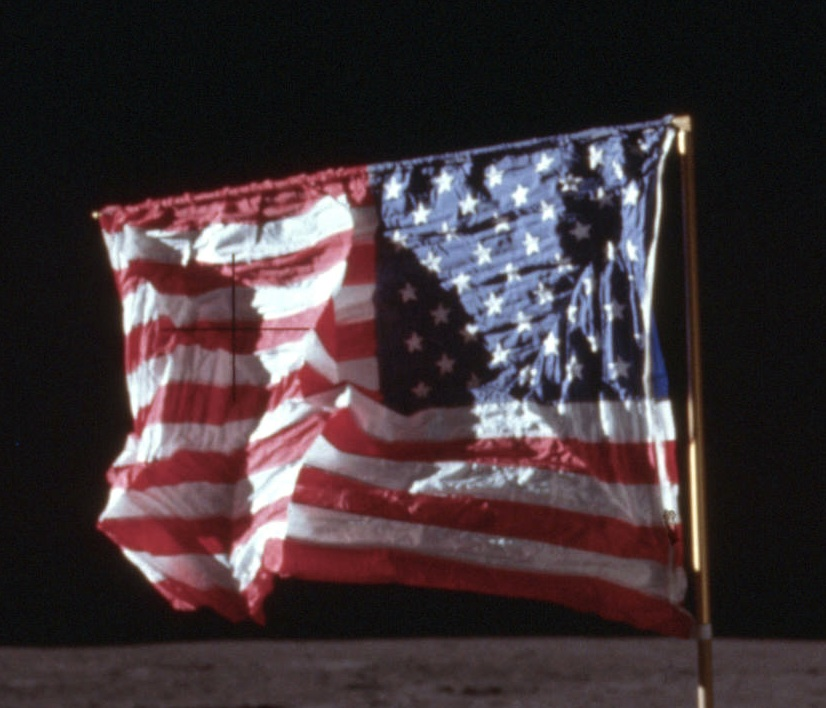 Purtroppo per massimo il "risucchio" si può spiegare perfettamente, infatti quella bandiera, chiamata correttamente bandivela dal prof, aveva un'asta metallica orizzontale, tra l'altro un po' pendente, e se tutta la bandivela fosse stata inserita in un terreno leggermente in discesa, per cui con l'asta verticale inclinata su di un lato, quell'asta orizzontale metallica che ha una certa massa, avrebbe cercato di posizionarsi in direzione della discesa per effetto della gravità, che seppur a 1/6 g sulla Luna non è zero.