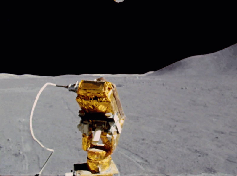 (ennesima) SMOKING GUN, quel rover è sulla Luna, infatti c'è il sole (non certo un faro, basta guardare dal video completo quanta strada fa il rover per non essere sotto un faro) ma il cielo è nero come la pece infatti non illumina il kapton quando questo è orizzontale.