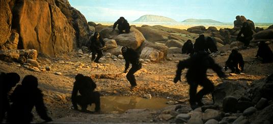 Per realizzare una scena simile si può fare una ripresa in esterni con un mascherino che cancella il cielo dietro alle montagne.