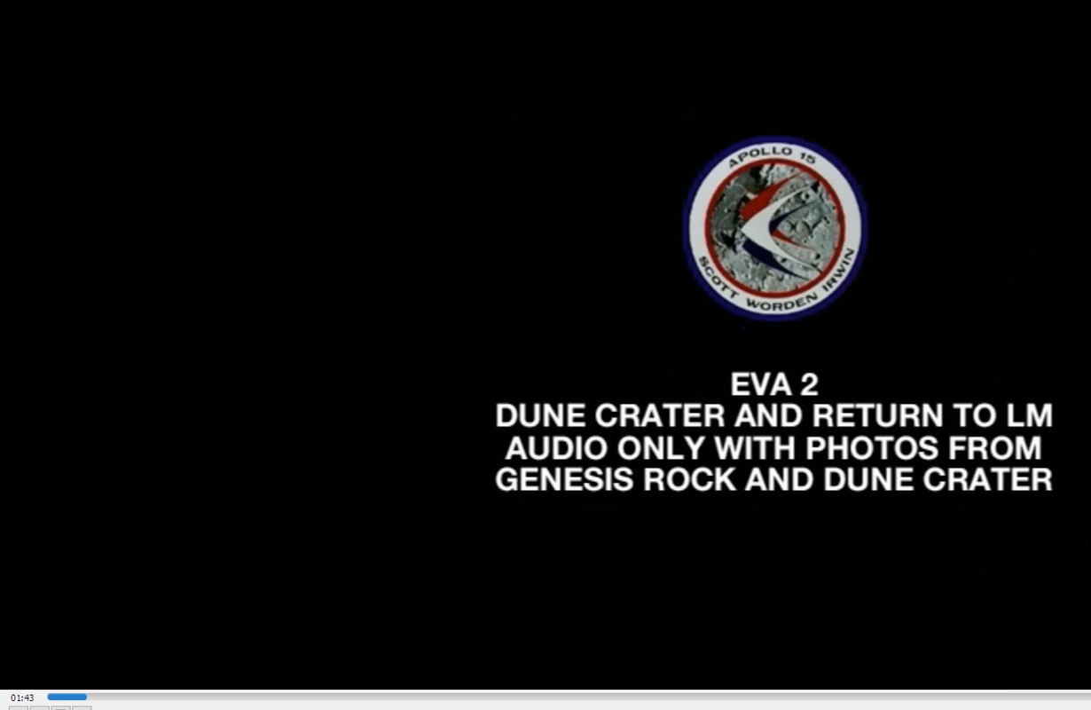 Qui si trovano gli audio originale della Nasa di tutta la missione Apollo 15, (nella pagina ci sono 48 file dalla durata media di 3 ore, anche se alcuni sono più corti).