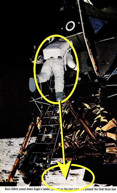 Per cui o Aldrin aveva una tuta che emanava luce propria, o siamo di fronte ad una manipolazione tesa a illuminare solo Aldrin, cosa che con un po' di perizia si poteva fare anche per via analogica.